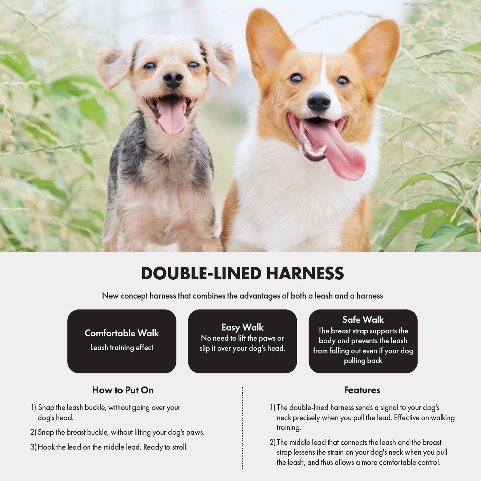 - Chest-Strap: When pets lean backward, and try to slip out of the harness, it keeps them securely in place
